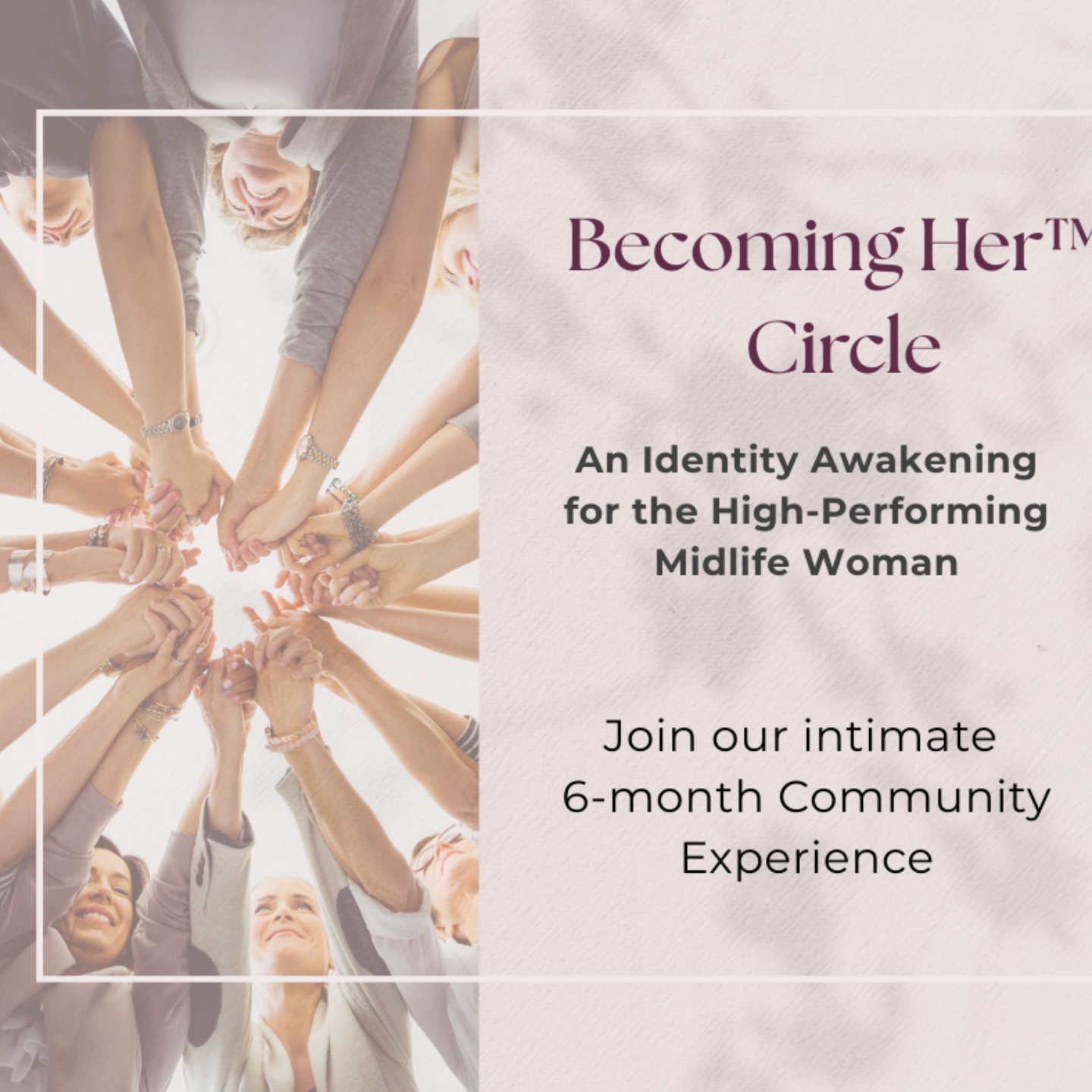 For the high-performing midlife woman who senses something is shifting, Becoming Her⢠Circle offers a structured, intimate space to move beyond roles and step into the one she is becoming.